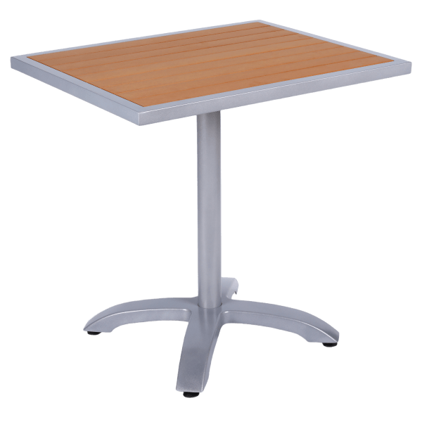 Metro Outdoor Table in Silver Finish with Natural Faux Teak