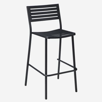 Our diverse collection of patio bar stools offers various back designs such as metal mesh, checker, cross, ladder, and backless. Styles include faux teak, woven faux wicker, stainless steel, aluminum, and resin. Crafted for heavy outdoor use, these stools are weather-resistant and will not rust. Some models include armrests, and all feature an under-seat reinforcement bar that doubles as a footrest. Pair these stools with our outdoor bar height patio tables, and stackable options are available for space-saving needs. Designed for use in commercial outdoor settings with high traffic, our patio bar stools are a versatile and durable choice.